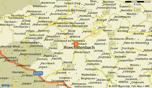 z.B. A-3 Ausfahrt Dierdorf Richtung Hachenburg (B-413) bis Höchstenbach.